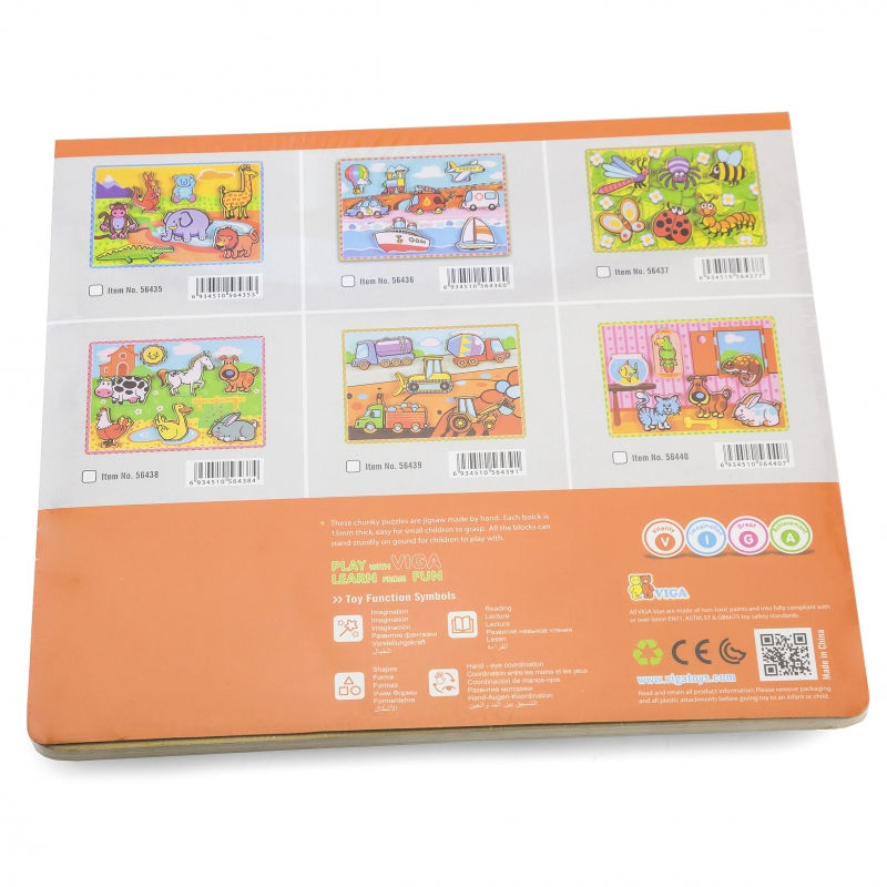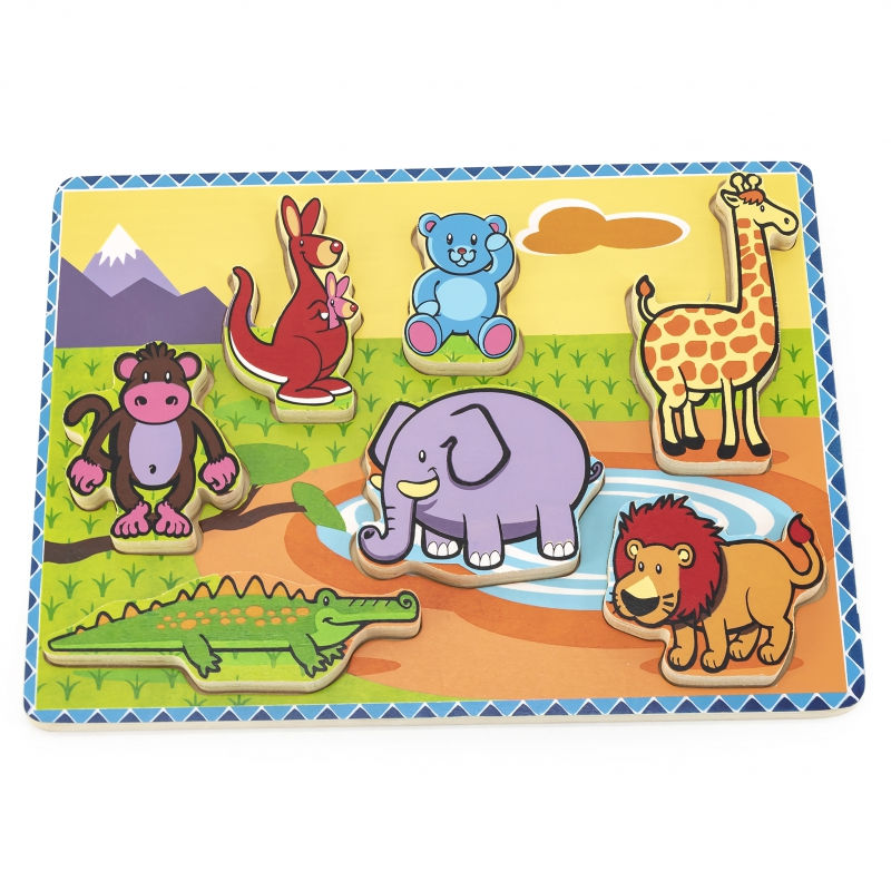 Drewniane Grube Puzzle od Vigi dla dzieci od 12 miesiąca życia to idealne rozwiązanie do domu, jak i do przedszkola. Składa się z planszy, oraz 7 elementów z dzikimi zwierzętami, które należy do niej zamontować. Na drewnianej podstawce znajdują się wgłębienia, które swoim kształtem odpowiadają kolorowym puzzlom. Dzięki zabawce dziecko rozwija koordynację wzrokowo-ruchową.