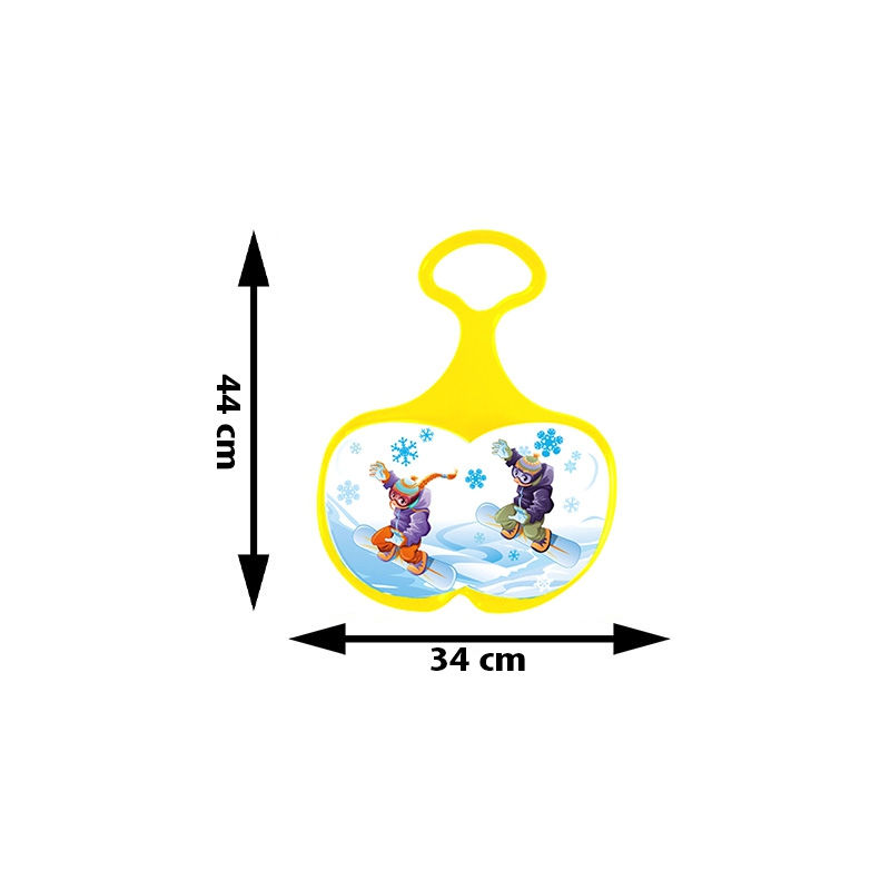Mochtoys Jabłuszko Do Zjeżdżania Żółte. Zabawka do zjazdów, ślizgania się po śniegu dla dzieci. Czas na zabawę na śniegu! Super frajda ze zjeżdżania z górki na pazurki. Piękna kolorystyka. Zabawka przeznaczona jest wyłącznie do zabaw na śniegu, tylko i wyłącznie pod nadzorem osoby dorosłej. Podczas zjazdu jabłuszko powinno być skierowane uchwytem w kierunku jazdy. Należy zjeżdżać w pozycji siedzącej, zapewniającej najlepszą stabilność podczas zjazdu. W trakcie zabawy używaj odpowiedniego ubrania ochronnego kask, rękawice. Łatwo wyczyścisz jabłuszko za pomocą wilgotnej i suchej szmatki. Najwyższej jakości materiały zapewniają dobrą wytrzymałość i trwałość kolorów. Zaproś przyjaciół do zabawy! Ulubiona forma zabawy wszystkich dzieci.