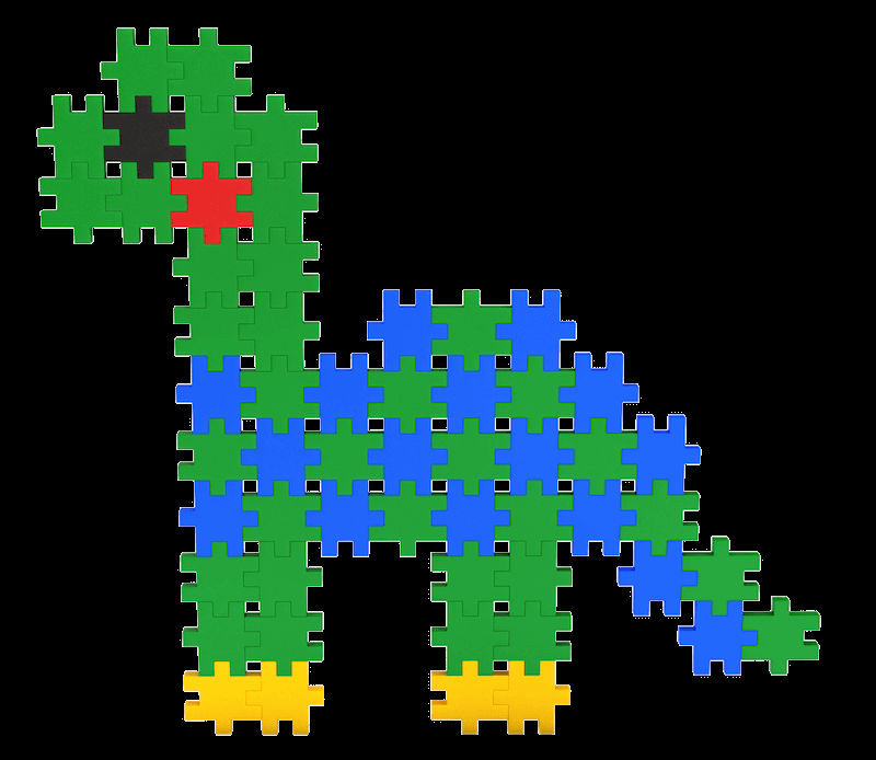 Zaprojektowane na kształt puzzli elementy bardzo łatwo się łączą w fantazyjne kompozycje. Żywe kolory oraz niekończące się możliwości układania pozwalają na wielogodzinne kreatywne zabawy. Dołączone instrukcje będą inspiracją na początek ciekawej zabawy.