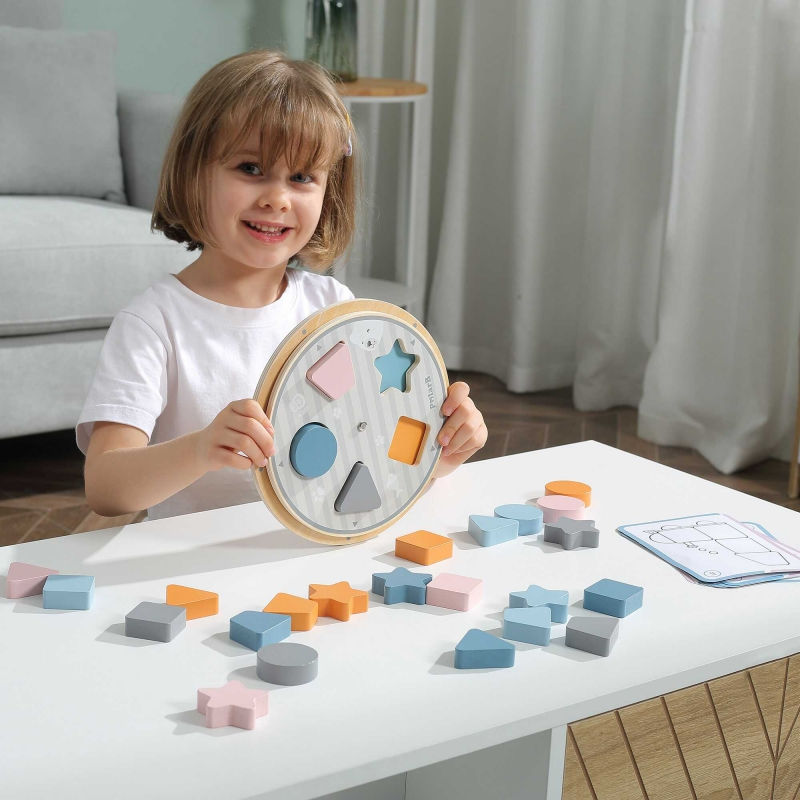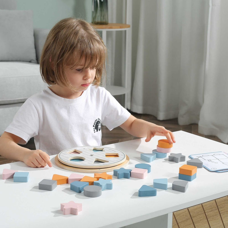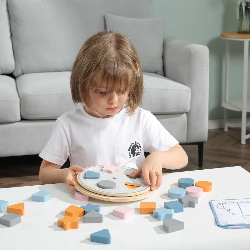 Układanka z dopasowaniem kształtów i kolorów jest idealnym produktem dla najmłodszych. Zestaw składa się z barwnych klocków o różnych kształtach, woreczka na klocki, kart oraz planszy do ustawiania klocków. Zabawka uczy, rozwija i bawi jednocześnie. Klocki pomalowane są nietoksycznymi farbami w łagodnej kolorystyce przyciągającej uwagę dziecka. Produkt wykonany jest z wysokiej jakości materiałów oraz ogromną dbałością o szczegóły. Układanka należy do popularnej serii PolarB