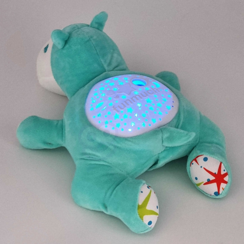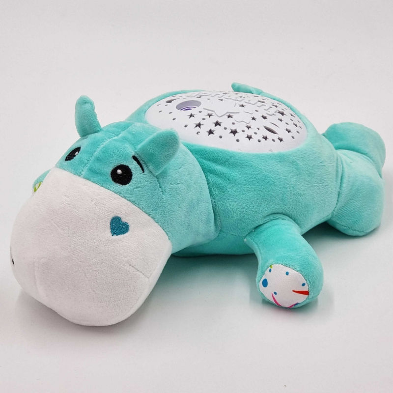 Pluszowy Usypiacz Hipopotam od marki Woopie, będzie kochającym towarzyszem snu twojego maluszka. Maskotka jest idealna dla niemowląt i starszych dzieci, które nie lubią same zasypiać. Hipopotam będzie idealnym strażnikiem dobrych snów i pogromcą potworów z szafy. Przytulak posiada funkcje projektora, które tworzy spokojną aurę podczas snu. Światełka zmieniają kolor i pokazując gwiazdy, księżyc oraz planety. Całości towarzyszy uspokajająca, relaksująca muzyka z odgłosami natury w tle. Zabawka posiada kilkanaście różnych kołysanek. Pozytywka odtwarza kołysanki nieprzerwanie przez prawie 20 minut, dzięki czemu dziecko będzie miało czas na zapadnięcie we wspaniały sen bez konieczności ponownego włączania kołysanek i ryzyka przebudzenia się maluszka. Gdy maluszek zaśnie to kołysanki można wyłączyć przyciskiem na brzuszku. Hipopotam posiada dwa poziomy głośności, dzięki czemu można ją idealnie dopasować do potrzeb dziecka. Zabawka jest przystosowana dla niemowląt, dlatego jest wypełniona miękką watą. Dodatkowo pluszaka bezpiecznie oraz łatwo można czyścić, wyjmując mechanizm i łatwo go potem montując. Daje to możliwość, aby również starsze dziecko mogło używać zabawki jako maskotki bez mechanizmu. Wszystkie dzieci uwielbiają hipopotamy!