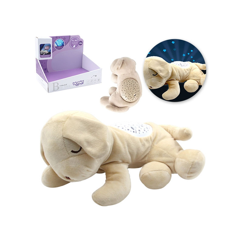 Pluszowy Usypiacz Piesek od marki Woopie będzie magicznym towarzyszem snu twojego maluszka. Maskotka jest idealna dla niemowląt i starszych dzieci, które nie lubią same zasypiać. Piesek będzie idealnym strażnikiem dobrych snów i pogromcą potworów z szafy. Przytulak posiada funkcje projektora, które tworzy spokojną aurę podczas snu. Światełka zmieniają kolor i pokazując gwiazdy, księżyc oraz planety. Całości towarzyszy uspokajająca, relaksująca muzyka z odgłosami natury w tle. Zabawka posiada kilkanaście różnych kołysanek. Pozytywka odtwarza kołysanki nieprzerwanie przez prawie 20 minut, dzięki czemu dziecko będzie miało czas na zapadnięcie we wspaniały sen bez konieczności ponownego włączania kołysanek i ryzyka przebudzenia się maluszka. Gdy maluszek zaśnie to kołysanki można wyłączyć przyciskiem na brzuszku. Piesek posiada dwa poziomy głośności, dzięki czemu można ją idealnie dopasować do potrzeb dziecka. Zabawka jest przystosowana dla niemowląt, dlatego jest wypełniona miękką watą. Dodatkowo pluszaka bezpiecznie oraz łatwo można czyścić, wyjmując mechanizm i łatwo go potem montując. Daje to możliwość, aby również starsze dziecko mogło używać zabawki jako maskotki bez mechanizmu. Wszystkie dzieci uwielbiają pieski!