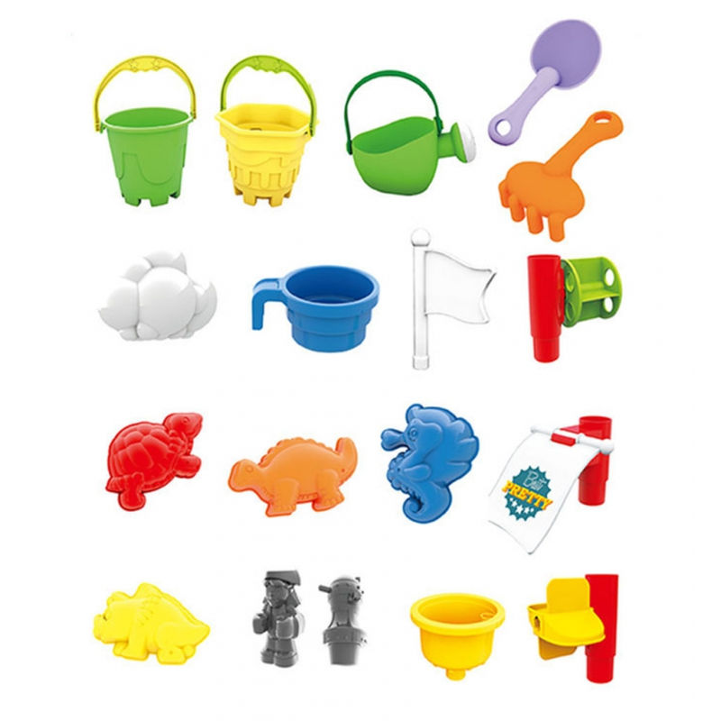 Stół Do Piasku od marki WOOPIE jest idealną zabawka do zabawy z wodą i piaskiem. Zestaw zawiera 13 akcesoriów: stolik z wyciąganymi nóżkami, foremki, wiaderka, konewkę, łopatkę i wiele innych. Stolik jest podzielony na trzy części, do jednej można wlać wodę, do drugiej wsypać piasek, a w trzeciej budować! Zestaw jest przeznaczony do zabawy w domu, jak i na zewnątrz. Idealne do zabawy w domu i na plaży lub piaskownicy.