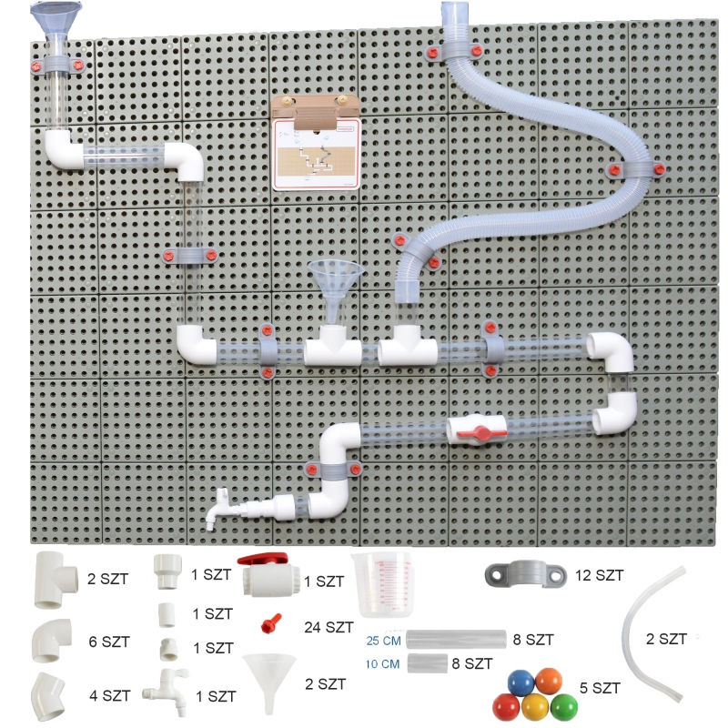 Zabawka sensoryczna, komplet 80 elementów, z których można zbudowań niesamowity system hydrauliczny z rurami, łączeniami i zaworami.