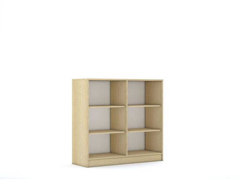 4 półki wykonane z płyty laminowanej o grubości 18 mm. Półki mocowane są na stałe do korpusu zabezpieczając je przed wypadaniem. Półki w kolorze korpusu.